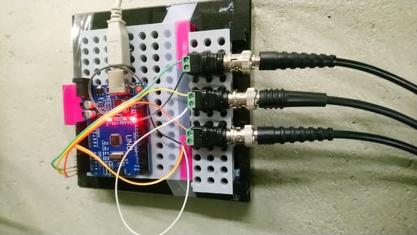 You might notice that at the moment we are only monitoring X Y and Z positions and not amplitude or deflection, this is because at the moment we are only interested in topography, and the heavy-lifting task of tracking the surface is left to the AFM controller, so we don't need to do anything with those signals. Nevertheless, if one wants to track an additional signal, there is another user output and the Arduino has plenty of analog inputs.